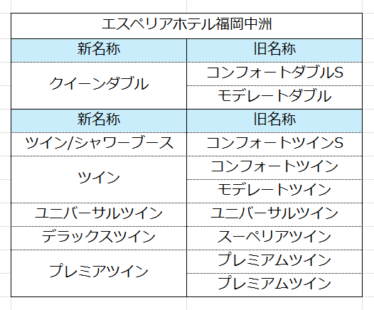 また、客室名称の変更前後の対比につきましては、以下をご参照ください。