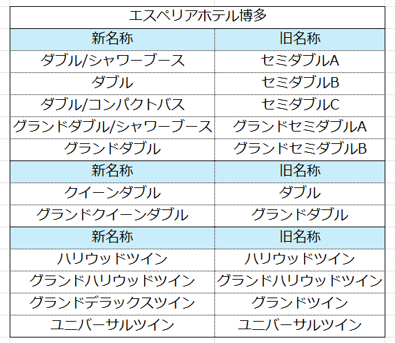 また、客室名称の変更前後の対比につきましては、以下をご確認ください。