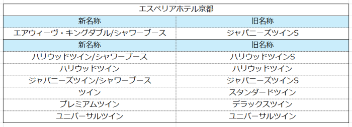 また、客室名称の変更前後の対比につきましては、以下をご確認ください。